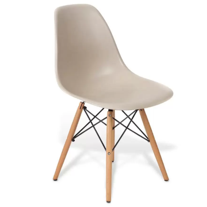 Seu modelo é Decor DKR com a cor fendi , o material do seu assento é polipropileno e a da sua estrutura é madeira e metal . Seu peso é de 4 kg , suportando até 120 kg . Sua altura montada é de 82 cm , sendo 44 cm a altura do assento , 46 cm de largura e 42 cm de profundidade.