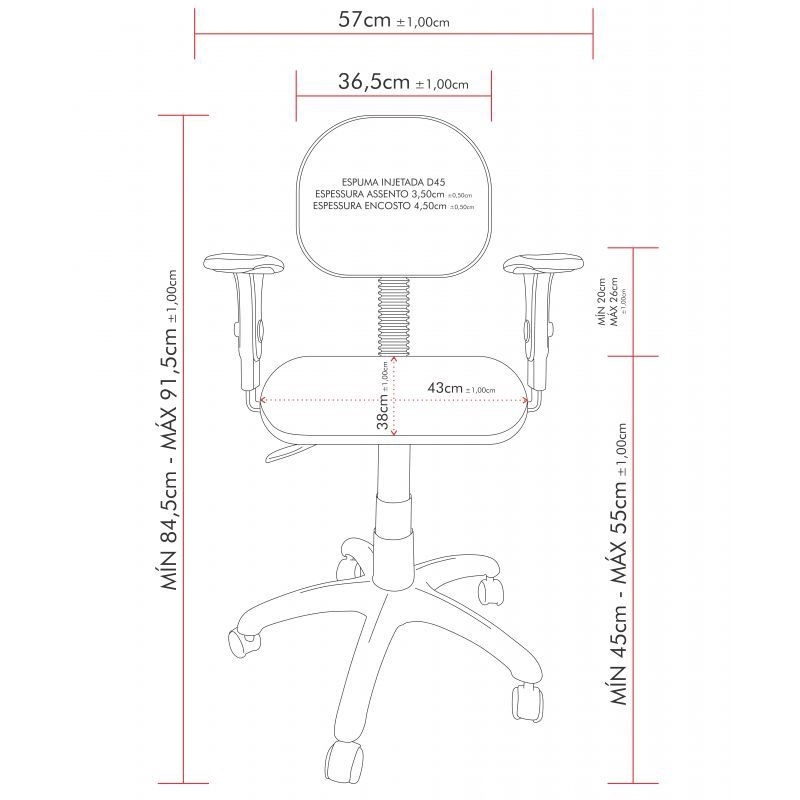 Cadeira Secretária Giratória possui regulagem de braços, possui regulagem da altura do assento para uma melhor postura, adaptando-se ao seu usuário.