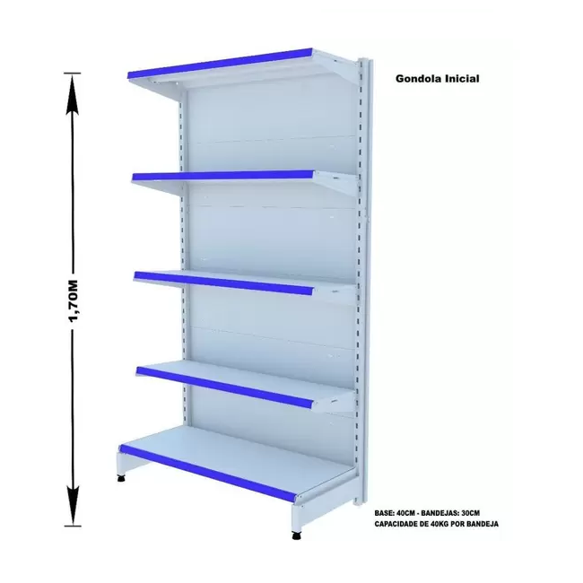 A Gôndola Premium Flex 40 Parede é ideal para supermercados, mercearias, lojas de utilidades, materiais de construção, agropecuárias e outros. Prática e fácil de montar, com sistema de encaixe sem utilização de parafusos, possui bandejas reguláveis a cada 4,5cm, pés com regulagem de altura, colunas dupladas e tratamento especial da superfície.