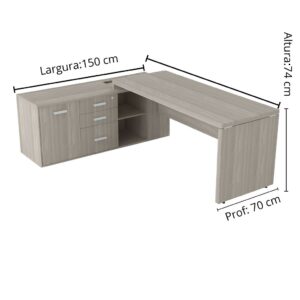 Conteúdo da Embalagem: Mesa Reta 1,72x70cm / Gaveteiro Pedestal