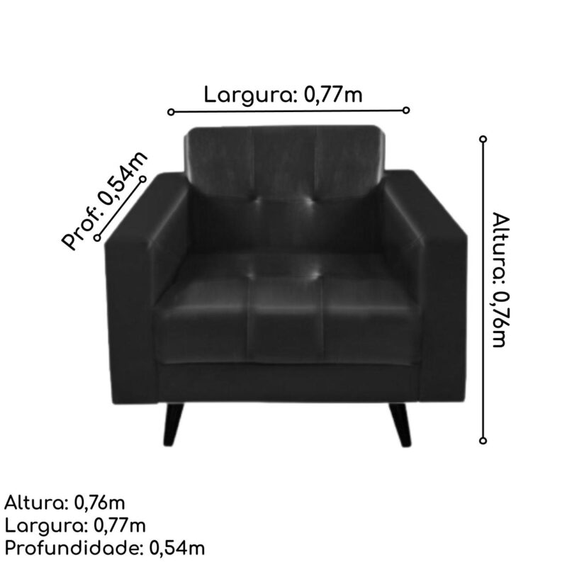 Poltrona para Escritório 01 Lugar – Corino – Cor Preto