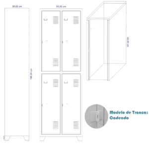 - Sistema de fechamento c/ Pitão p/ Cadeado