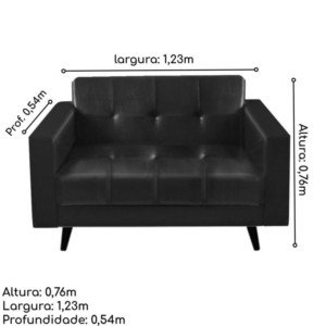 Produto: Sofá para Escritório 02 Lugares – Corino – Cor Preto